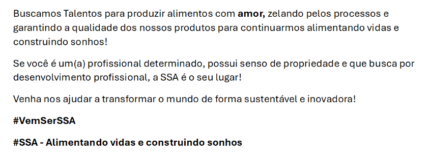 Com a estrutura totalmente verticalizada, a SSA gerencia todas as etapas da cadeia produtiva, desde matrizes e produção de ovos férteis até a distribuição de produtos In Natura e processados para o Brasil e para mais de 70 países.