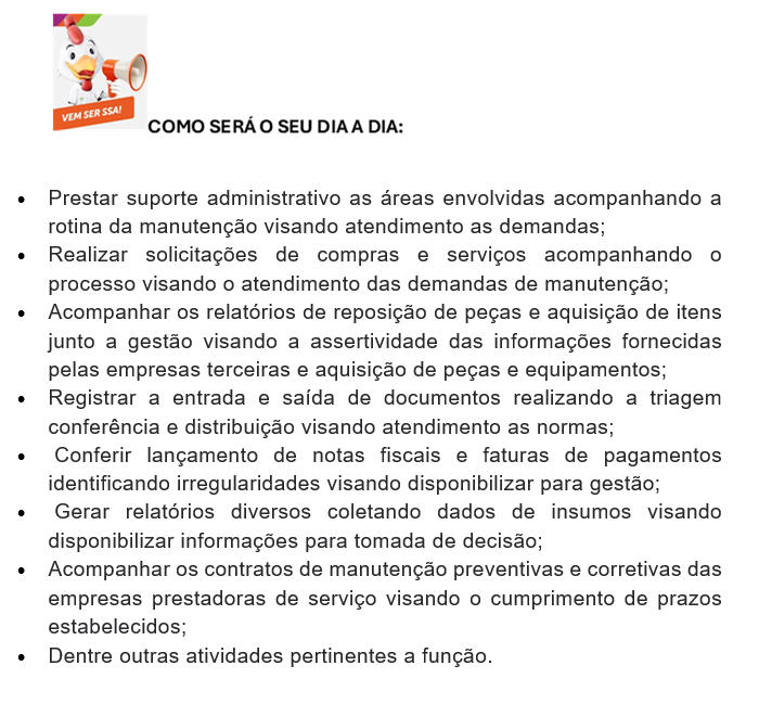 Assistente Administrativo SR - Manutenção/Fábrica de Ração