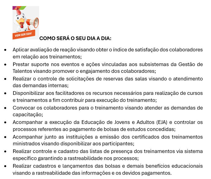 Se você é um(a) profissional determinado, possui senso de propriedade e que busca por desenvolvimento profissional, a SSA é o seu lugar!